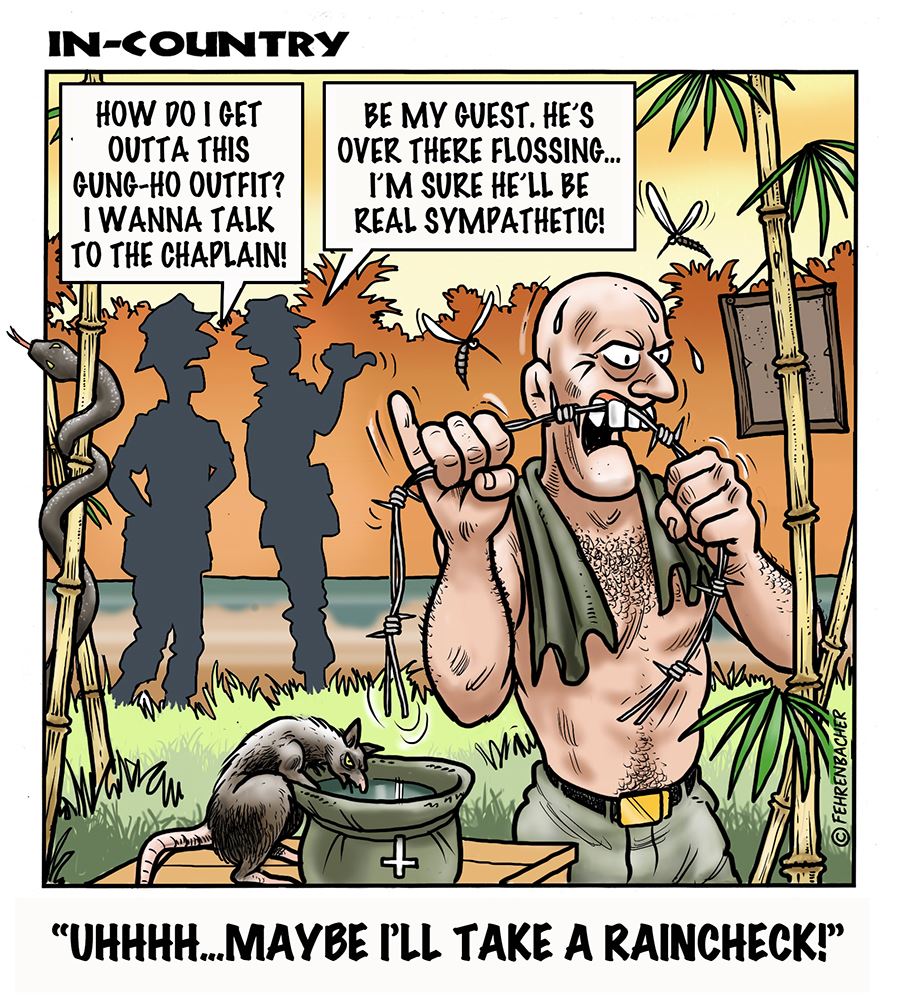 Phil enlisted in the Army in 1965 where he served for years in Vietnam. He became a graphic designer and has worked for the state of Oregon for 26 years. He retired in 2003 and started the Cartoon "In-Country". The cartoons reflect his experiences during his tour of duty in South Vietnam.