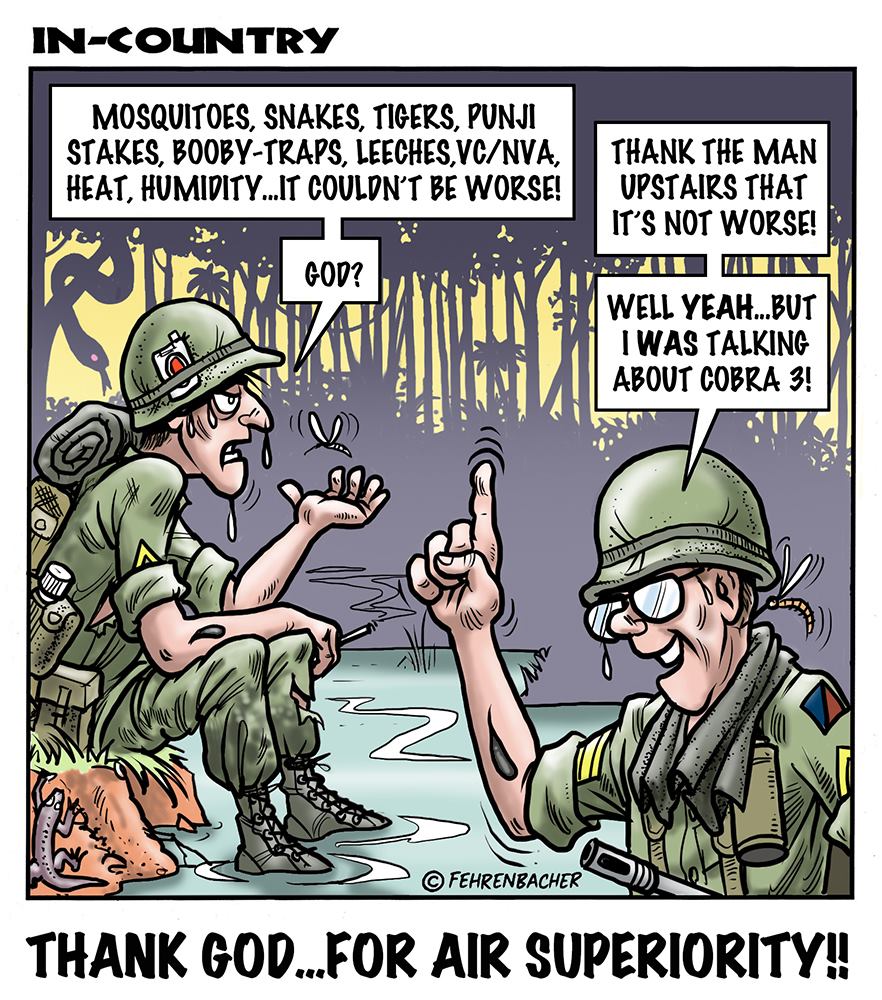 Phil enlisted in the Army in 1965 where he served for years in Vietnam.  He became a graphic designer and has worked for the state of Oregon for 26 years.  He retired in 2003 and started the Cartoon "In-Country".  The cartoons reflect his experiences during his tour of duty in South Vietnam.